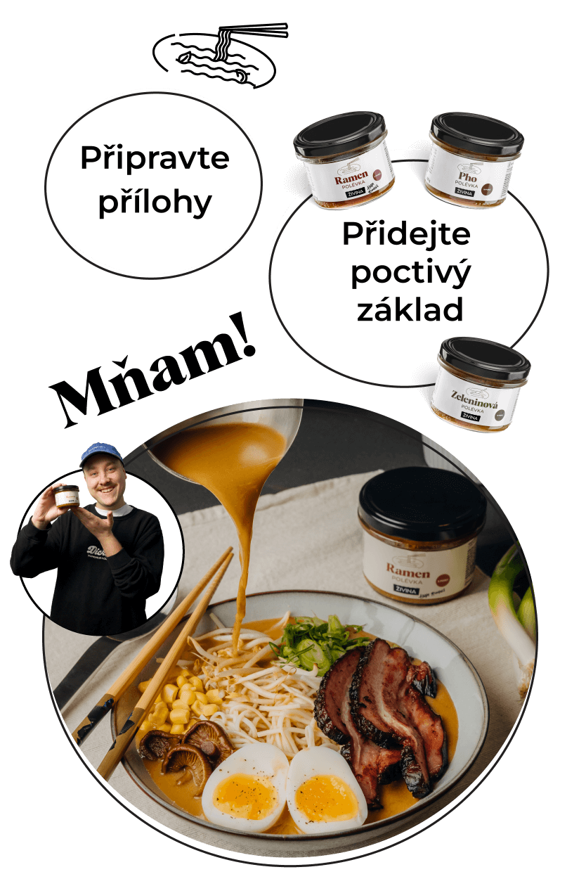 Rychlé polévky od Živiny jsme vytvořili přesně pro chvíle, kdy chcete mít jídlo hotové raz dva. Ale bez kompromisů v kvalitě! Tu hlavní práci jsme odvedli za vás – dlouhé vaření, ladění receptury i kombinování chutí. Použili jsme jen ty nejlepší ingredience a každý recept jsme vypiplali k dokonalosti. Vy už jen otevřete, naservírujete a vychutnáte si poctivou polévku, která chutná jako od (asijské) maminky, jen s mnohem menší námahou.